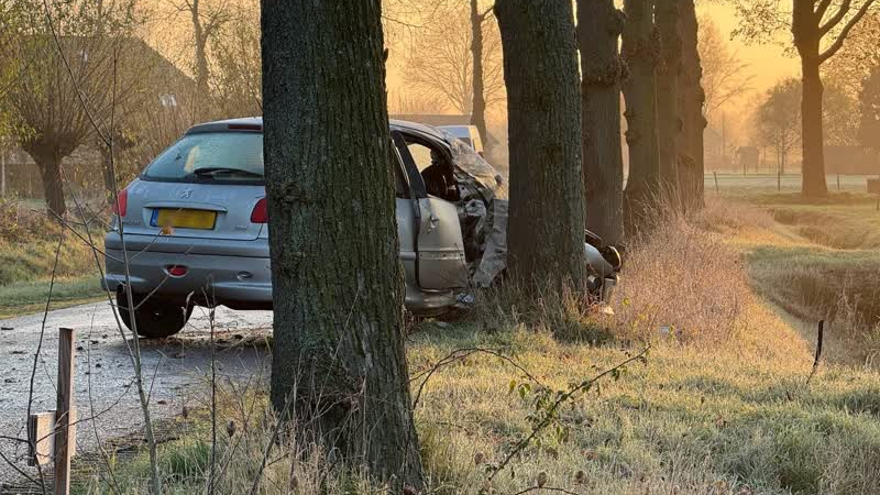 Een bestuurder is vrijdagochtend door gladheid met zijn auto tegen een boom geknald nabij Megchelen....