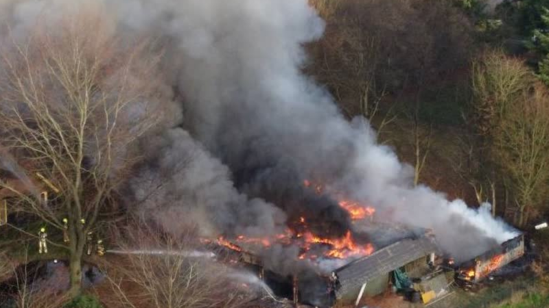 Slijpwerkzaamheden hebben maandagmiddag een hooibrand veroorzaakt op een boerderij aan de Modijk in ...