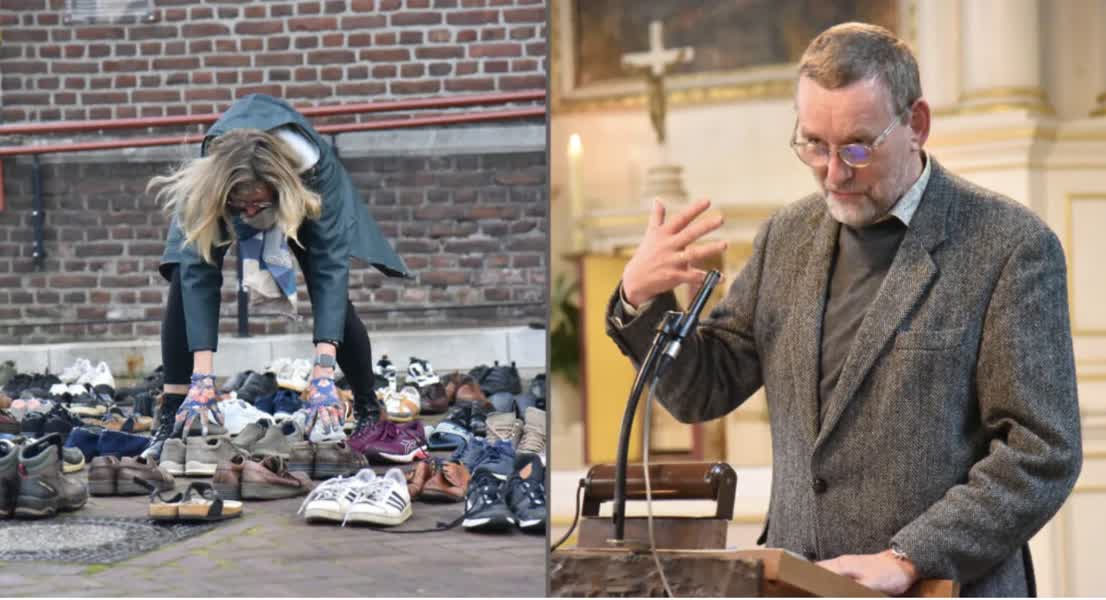 In een volgepakte kerk sprak de burgemeester van Aalten, Anton Stapelkamp (rechts op de foto), op indrukwekkende wijze over hen en hun lotgenoten. "Diepe wonden moet je reinigen om ze te laten genezen. Maar littekens blijven en herinneren altijd aan de pijn," zei de Nederlander over het dilemma tussen vergeven en vergeten.