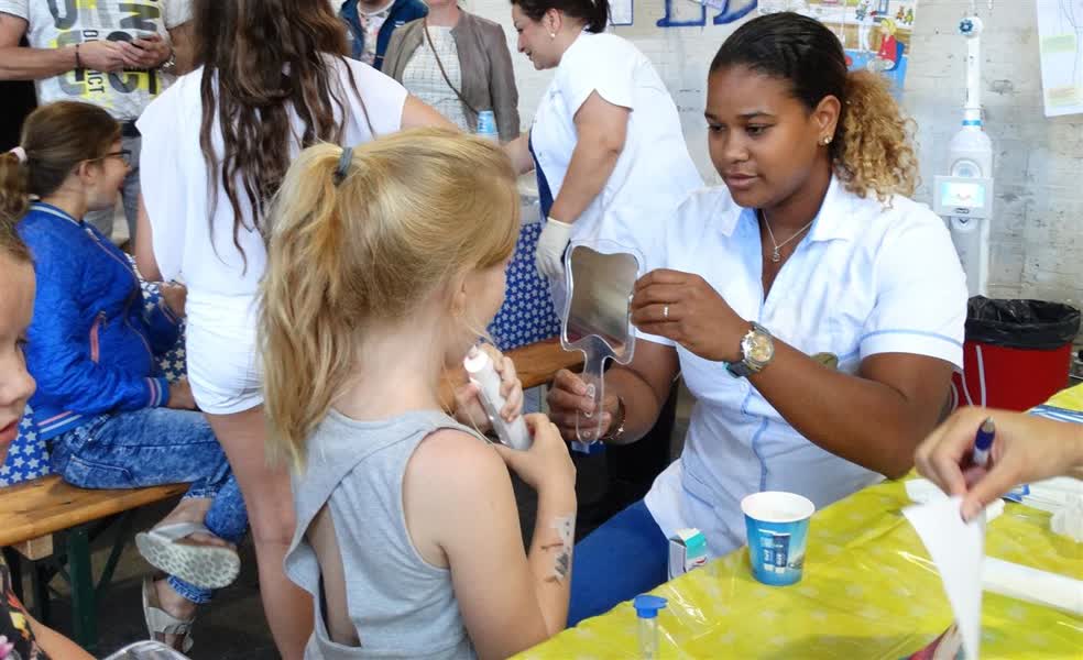 “Wij verwachtten niks, wat welk kind stapt er spontaan op een mondhygiënist af?”, vraagt de Silvoldse initiatiefnemer Lieneke Steverink-Jorna zich af. “Maar het meten van de zuurdrankjes bleek een ware hit en ook het krijgen van roze tanden na de plakverklikker vonden ze enorm grappig.” Tijdens de eerste editie in 2014 hadden ze handen te kort en ook afgelopen zaterdag bleken de tien mondhygiënisten het erg druk te hebben.