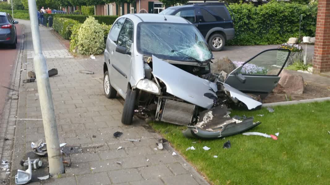 Hij ramde een lantaarnpaal en kwam daarna in een tuin tot stilstand. Omstanders hebben na het ongeval het hoofd van de man gestabiliseerd totdat de hulpdiensten ter plaatse waren. Met behulp van ambulancepersoneel is de man zelf uit zijn auto gestapt.
