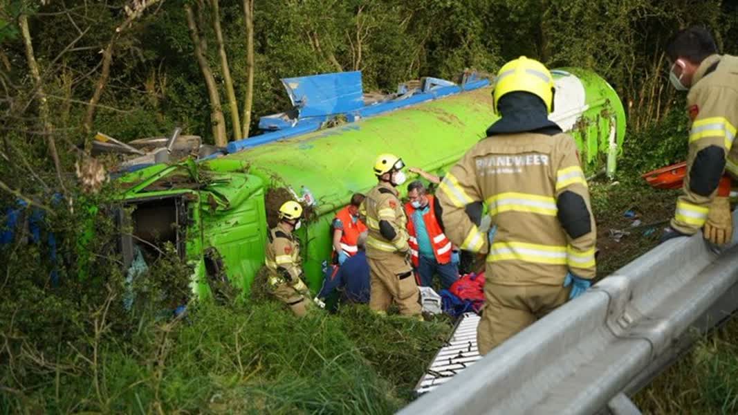 Het ongeval vond rond 07.15 uur plaats. Door onbekende oorzaak denderde de vrachtwagen volgens Omroep Gelderland dwars door de vangrail heen waarna het voertuig in de berm naast de weg belandde. De chauffeur van de gestrande vrachtwagen kon zichzelf uit het voertuig bevrijden, maar is wel met de ambulance naar het ziekenhuis gebracht. Het ongeval zorgde voor flinke filevorming op de snelweg, rond 10.45 uur stond er nog drie kilometer stilstaand verkeer.