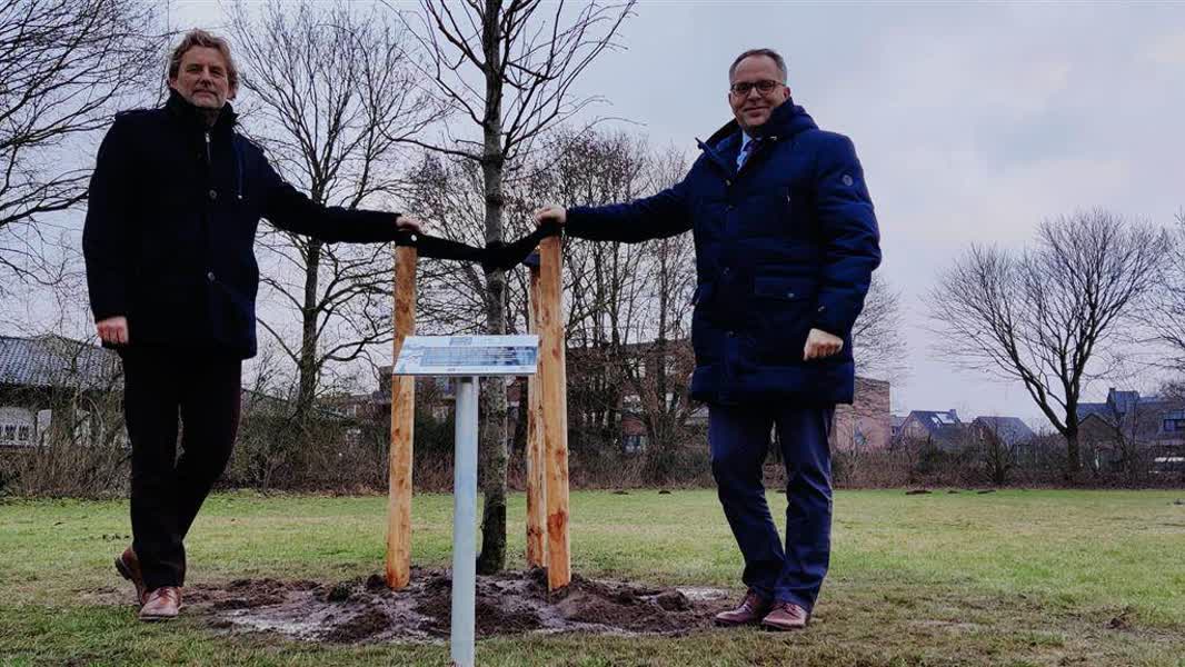 “Een linde is vanouds het wapen van de gemeente Aalten en dat is ook ons symbool”, aldus burgemeester Anton Stapelkamp van Aalten. “Bocholt heeft een beuk en om dan een boom te geven past ook wel een beetje bij het groen, allebei de gemeenten hebben groen in hun kleuren.” Burgemeester Thomas Kerkhoff van Bocholt is blij met de nieuwste aanwinst in zijn stad. De boom helpt mee aan de grootschalige aanleg waar ze mee bezig zijn. "We zijn zeer dankbaar omdat het goed in deze tijd past”, aldus de burgemeester. “Wij planten in Bocholt nu veel bomen, die we ook nodig hebben. Deze boom is er één van de achthonderd die we in het jubileumjaar bij ons aanplanten."