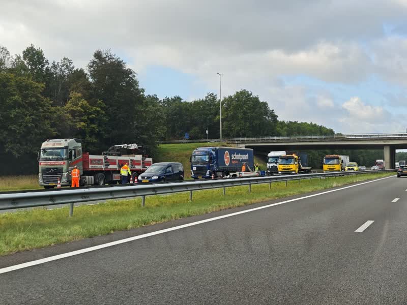 Weggebruikers moeten rekening houden met ongeveer een kwartier vertraging, laat Rijkswaterstaat via hun site weten. De opruimwerkzaamheden duren naar verwachting tot 13.00 uur.