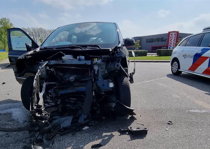 Twee automobilisten zijn zaterdagochtend op elkaar gebotst op een kruising op een bedrijventerrein in Doetinchem. Geen van de betrokkenen hoefde mee naar het ziekenhuis.