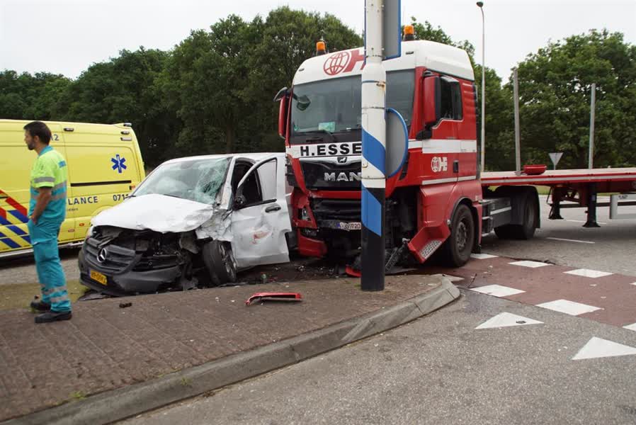 De brandweer kreeg omstreeks 09.00 uur een melding binnen op de Transito. Door nog onbekende oorzaak zijn een vrachtwagen met Belgisch kenteken en een bestelbusje tegen elkaar gebotst. Vermoedelijk zag de bestuurder van de bestelbus niet dat de vrachtwagen het industrieterrein op wilde rijden.