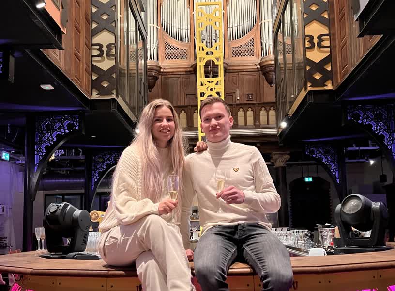 “We willen de sfeer van de kerk terug laten komen in ons restaurant en hotel”, vertelt de 24-jarige Janiek uit Didam, die samen met haar eveneens 24-jarige vriend Bart uit Ruurlo de voormalige Bizar Bazar in Arnhem heeft overgenomen. De twee werkten al verschillende jaren in de horeca. Zo deed Janiek ervaring op in het buitenland en werkte Bart bij restaurants in Zutphen en Amsterdam. Het koppel ontmoette elkaar toen ze allebei werkten bij Villa Ruimzicht in Doetinchem, dat onderdeel is van de Horeca Inspiratie Maatschappij (HIM+). Via deze organisatie, eigenaar van verschillende horecabedrijven in de Achterhoek, kwam het stel bij de kerk terecht. “We waren op wijnreis in Zuid-Afrika toen HIM+ belde of Bizar Bazar iets voor ons was”, aldus Janiek.