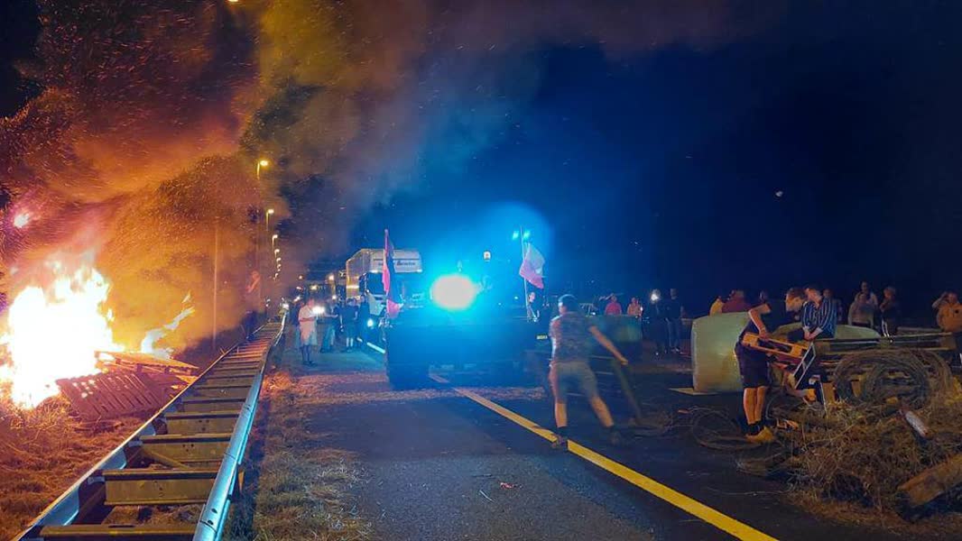 Een honderdtal boeren en andere sympathisanten heeft dinsdagavond de snelweg A12 geblokkeerd. Vanaf de A18 bij Oud-Dijk werd de A12 vlak voor de afslag naar Zevenaar afgesloten, onder meer door brand te stichten.