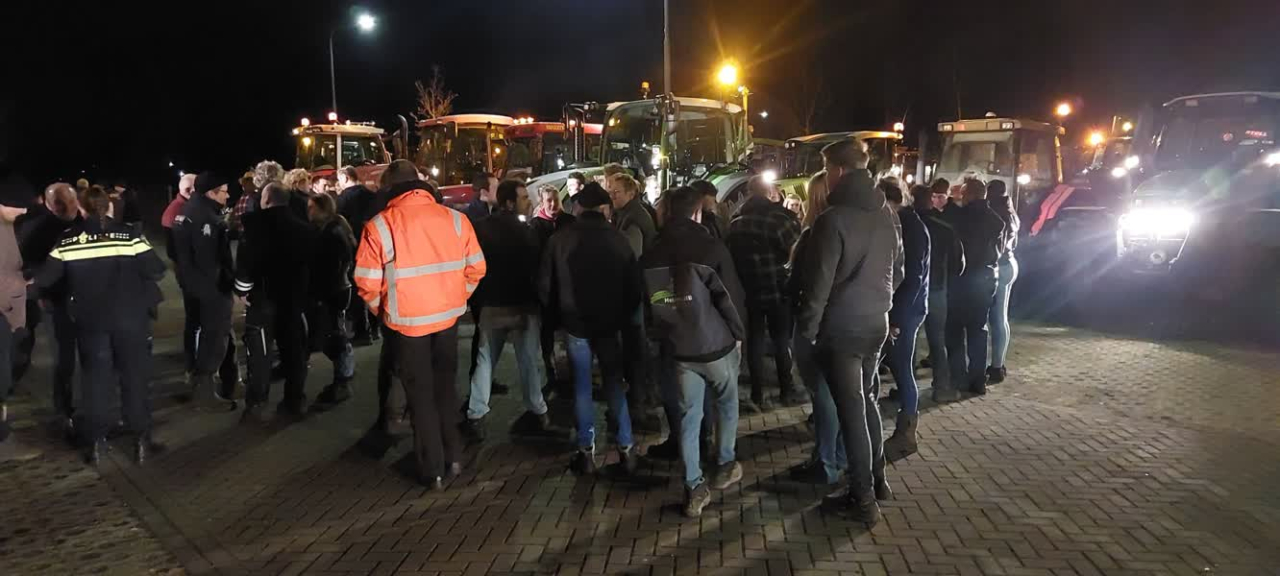 “We willen een laatste noodsignaal afgeven”, zegt veehouder Ronald Wolters uit Lievelde, een van de boeren die zich rond 19.00 uur op de carpoolplek bij Varsseveld verzamelden. “Het water staat bij ons aan de lippen. Het schuttinkje van de overheid wordt steeds kleiner, en er wordt steeds meer op ons bordje gegooid. Dat kan echt niet langer. We willen een rode streep trekken. Tot hier en niet verder, nieuw beleid moet er komen!”