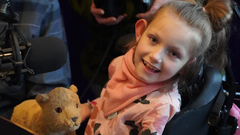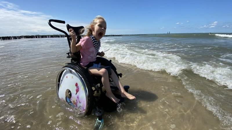 De zevenjarige Mirthe uit Ruurlo heeft, sneller dan verwacht, een rolstoelbus gekregen zodat ze met ...