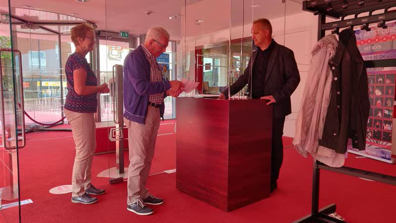 Medewerkers van het Amphion Cultuurbedrijf in Doetinchem en het DRU Industriepark in Ulft staan te p...