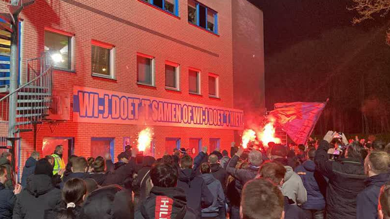 Enkele tientallen supporters van De Graafschap hebben vrijdagavond voorafgaand aan het duel met FC D...