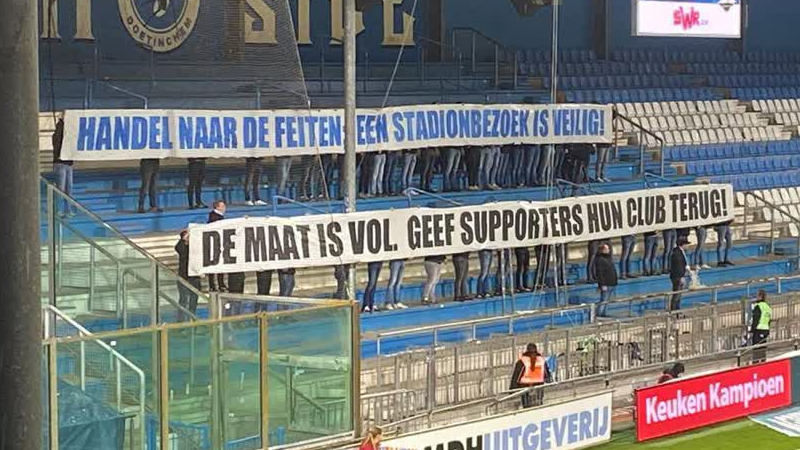 Supporters van De Graafschap zijn vrijdagavond de tribunes opgegaan van stadion De Vijverberg tijden...