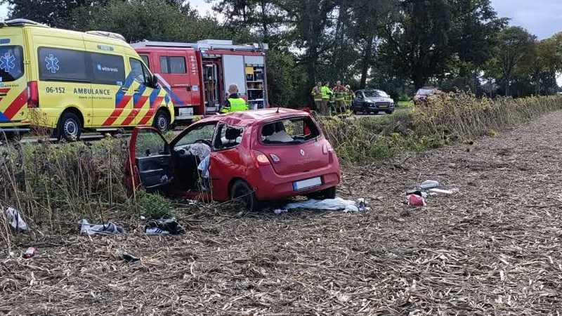 Een automobiliste is zaterdagmiddag over de kop geslagen en in een maïsveld terechtgekomen in het bu...