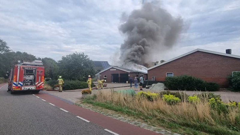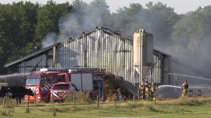 Bij een stalbrand in De Heurne zijn in de nacht van maandag op dinsdag naar schatting tien kalveren ...