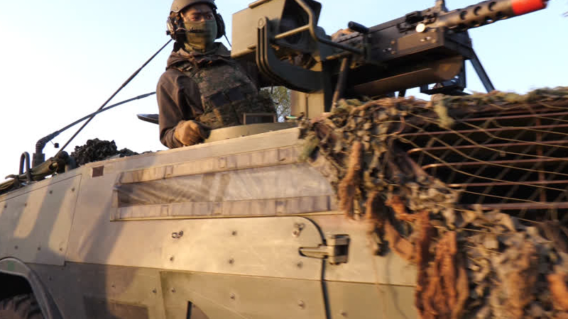 Een bijzonder gezicht maandagavond bij de veerpont bij het stadje Bronkhorst. Militairen van de 43 G...