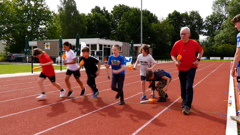 Zo'n 120 Nederlandse en Duitse kinderen kwamen samen op de atletiekbaan in Gendringen om de welbeken...