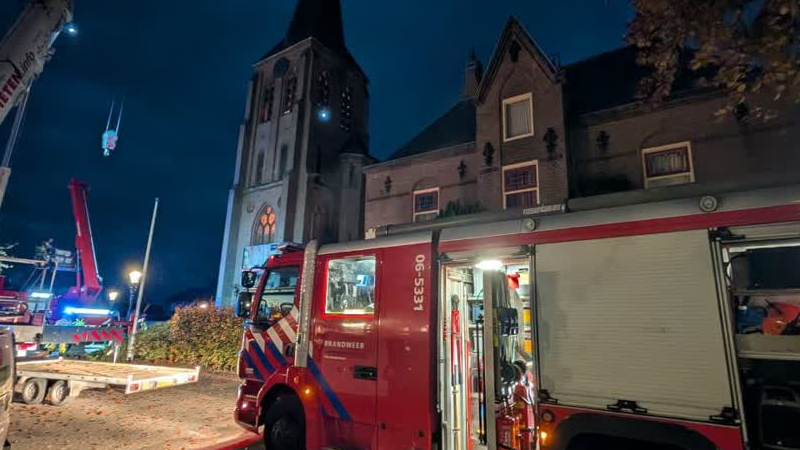 Bij werkzaamheden aan de kerktoren aan de Hoofdstraat in Kilder is dinsdagavond een man gewond geraa...