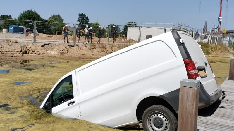 Een bestelbusje van een pakketbezorger is dinsdagmiddag in de Oude IJssel beland in Doetinchem. Een ...