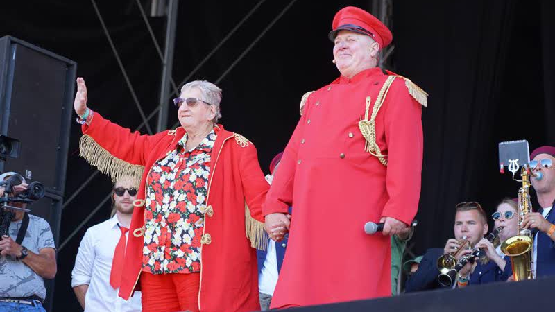 Tante Rikie geeft haar laatste optreden als 'zangeres' tijdens de afsluiting van het Mega Piratenfes...