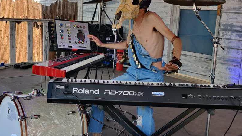 De Spaanse Vurro, die met stierenmasker optreedt, stond zaterdagmiddag op de Zwarte Cross. Festivalg...