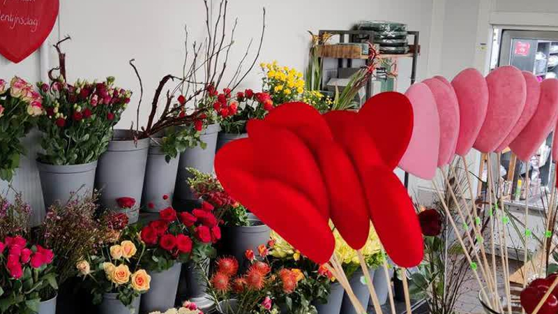 Bij tuincentrum Steentjes in Silvolde staan de Valentijnboeketjes klaar om verkocht te worden. Voora...