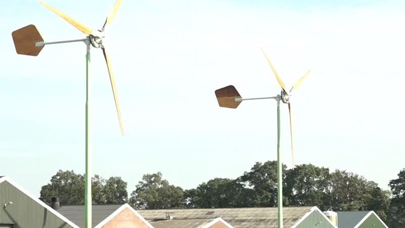 De windmolens op het erf van de Hengelose pluimveehouder Eddy Hoftijzer mogen vanaf dinsdag weer gaa...