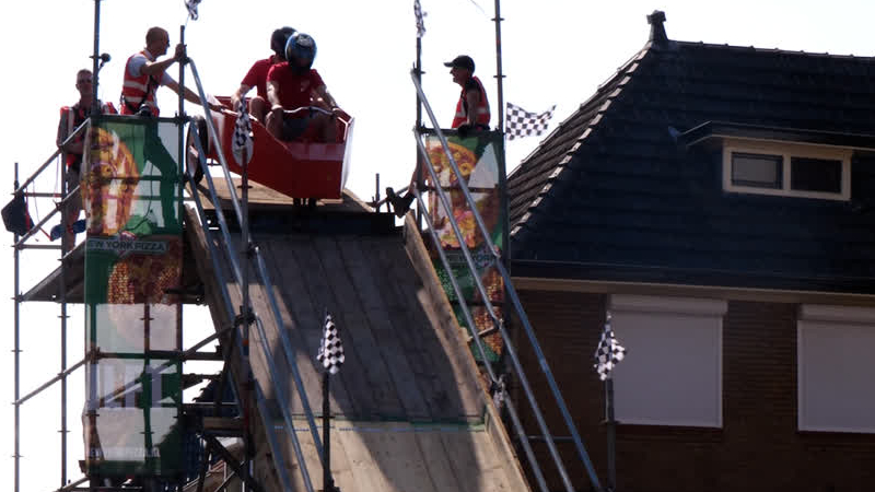 Dertig waaghalzen hebben zich zaterdag van een metershoge schans naar beneden gestort tijdens de zee...