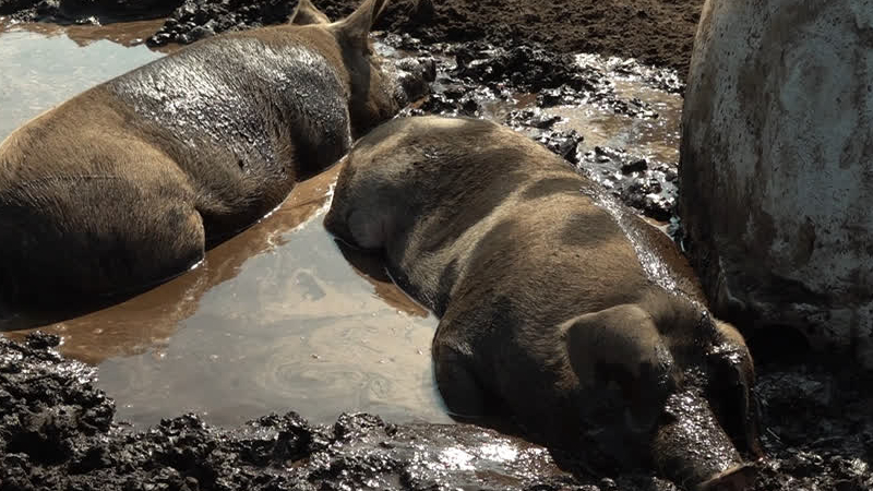 De tientallen wroetende varkens van boerin Bibi Dijkema-Wolters uit Halle liggen sinds deze maand in...