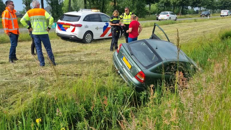Een automobilist is dinsdagmiddag in een sloot naast de N18 nabij Heelweg terechtgekomen na een uitw...