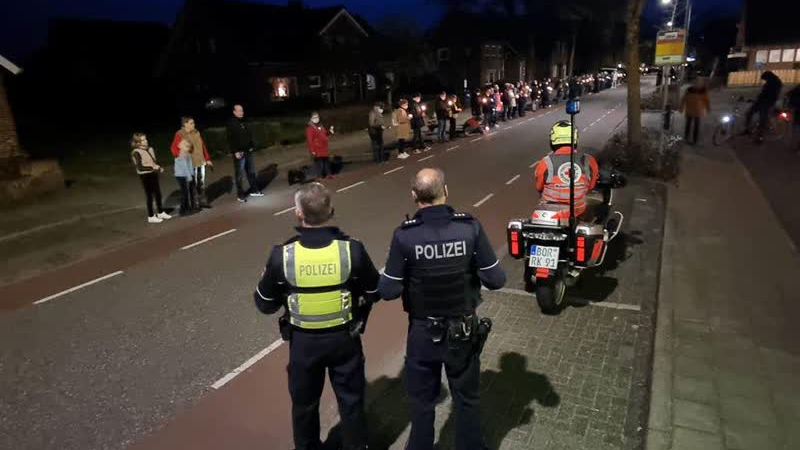 Honderden Nederlanders en Duitsers hebben zaterdagavond samen een ketting van licht gevormd in de gr...