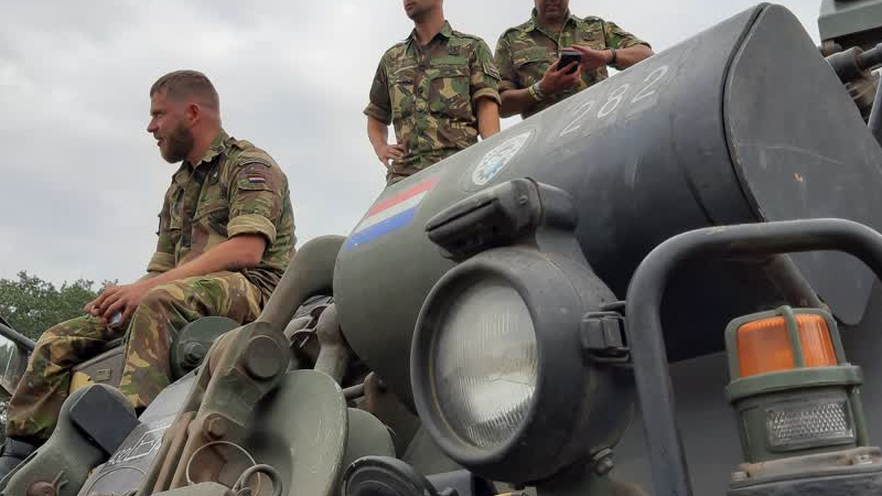 Een bijzonder gezicht maandagavond bij de veerpont bij het stadje Bronkhorst. Militairen van de 43 G...