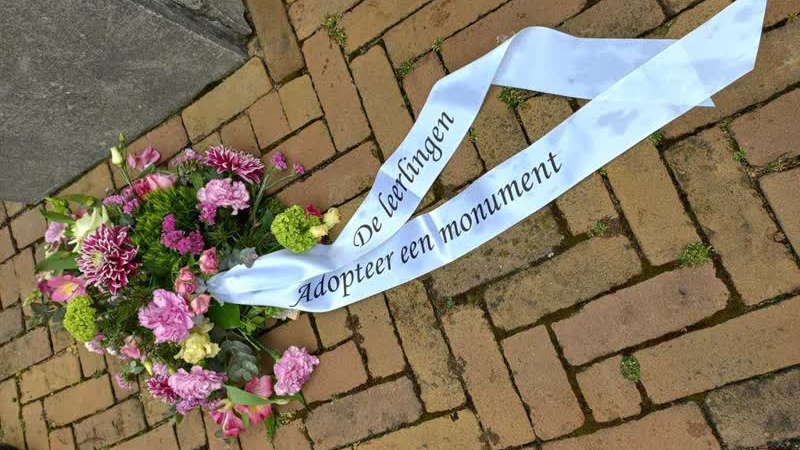 Groep 8 van Kindcentrum Oersprong uit Ulft hebben vrijdag een bloemstuk gelegd bij het door hun gead...