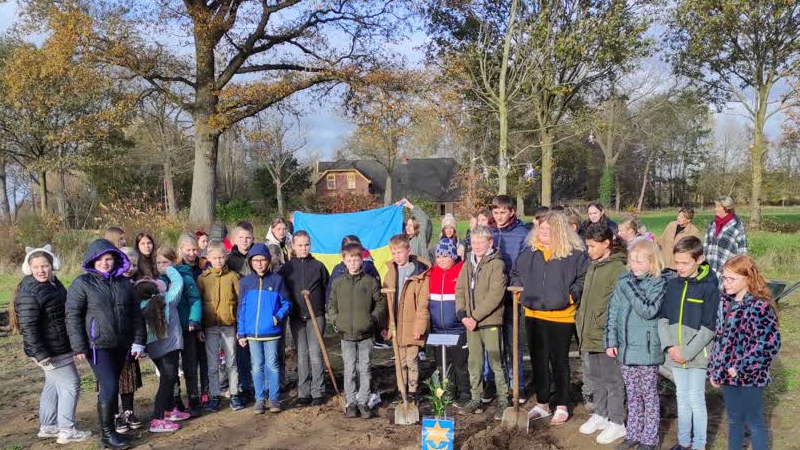Kinderen hebben vrijdag een Oekraïne-boom geplant in het Vrijheidsbos in Geesteren. Leerlingen van O...