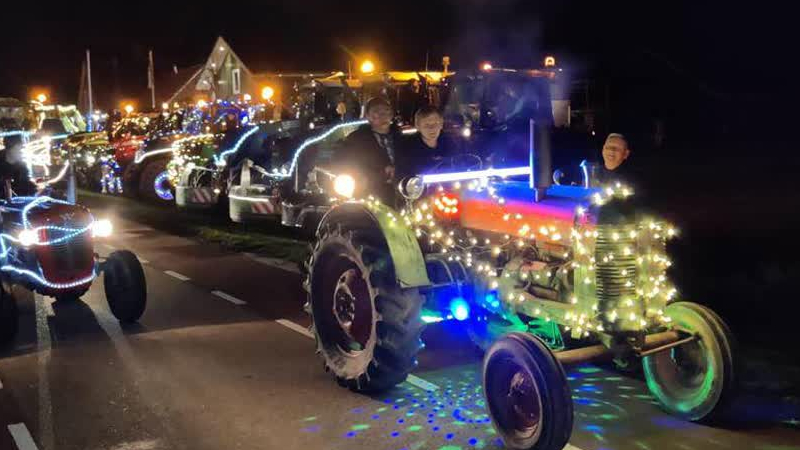 Honderd verlichte trekkers rijden vrijdagavond voor de vierde keer door de straten van de gemeente O...