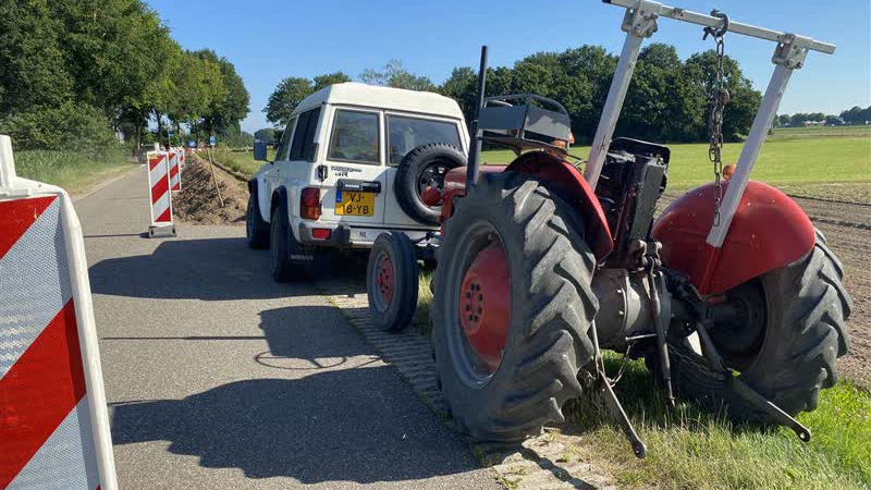 Een trekker met daarachter een hark heeft vrijdagmiddag vlam gevat in het buitengebied van Harreveld...