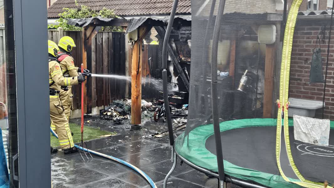 ‘Opa, opa, daar is brand’, klonk het woensdagochtend. De kleinkinderen waren bij de buurman en zagen de vlammen in het afdak achter een woning. De buurman heeft vervolgens de brandweer gebeld. Ze hebben geblust, maar konden niet voorkomen dat het afdak als verloren kan worden beschouwd.
