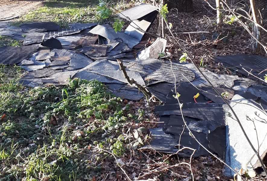 Aan de Oude Bocholtsebaan in Winterswijk heeft de politie maandagochtend een afvaldumping ontdekt. Op foto's van wijkagent Willem Saris is te zien dat een lading dakbedekkingsmateriaal gedumpt is in de bosjes langs de weg in het buitengebied.