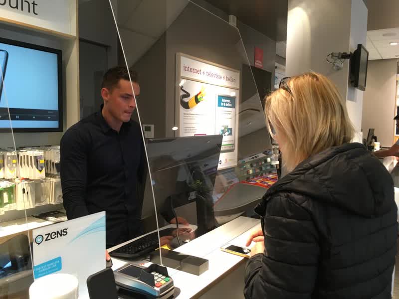 “Het ligt in mijn branche natuurlijk helemaal stil”, zegt bedenker Eef Bus, in het dagelijks leven leidinggevende bij een evenementenbureau in Zevenaar. “Maar je wilt elkaar als ondernemers natuurlijk helpen en daarover nadenkend kwam ik toen op dit idee voor de winkeliers.” Het eerste scherm is woensdag in Doetinchem bij een telefoonwinkel geplaatst. Het idee is dat een klant zo toch aan de balie contact kan hebben met een medewerker, maar dan wel veilig met het plexiglas ertussen.
