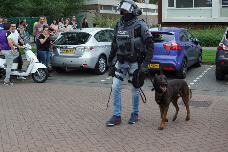 De inval van het arrestatieteam trok veel bekijks. Meerdere mensen keken toe hoe de woning werd binnengevallen.