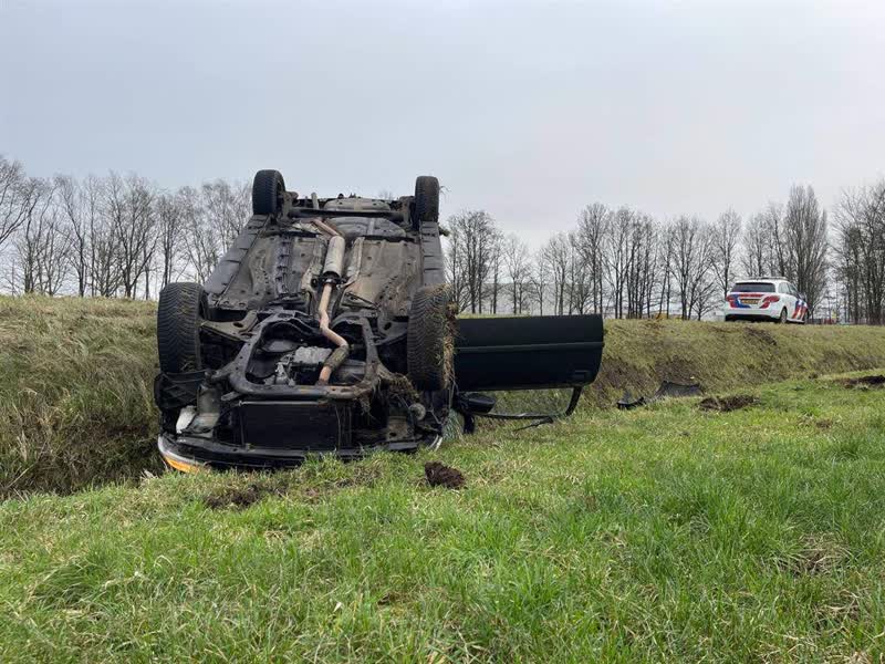 De bestuurder is met onbekend letsel naar het ziekenhuis gebracht. De auto raakte flink beschadigd en moest worden afgesleept.