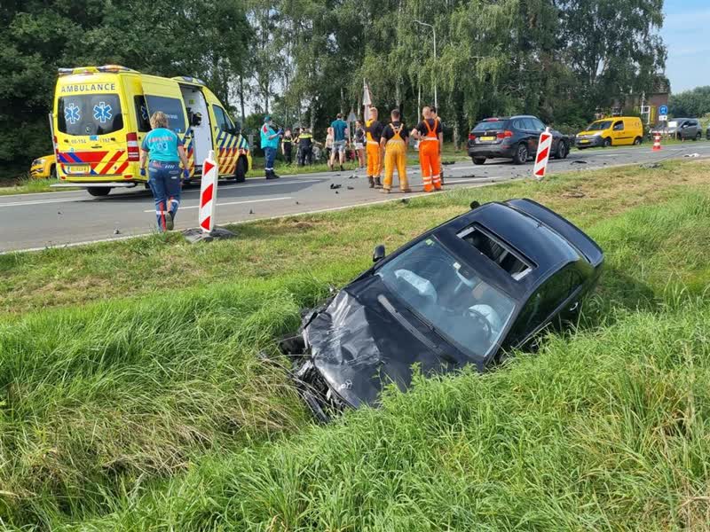 Twee auto's zijn dinsdagmiddag op elkaar gebotst in het buitengebied van Zelhem. Een van de auto's kwam tot stilstand in een sloot aan de kant van de weg.