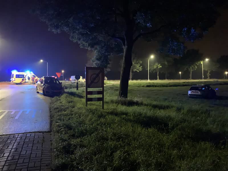 Twee auto's zijn zaterdagavond op elkaar gebotst op een kruising in Beek. Een van de auto's kwam tot stilstand in een weiland.