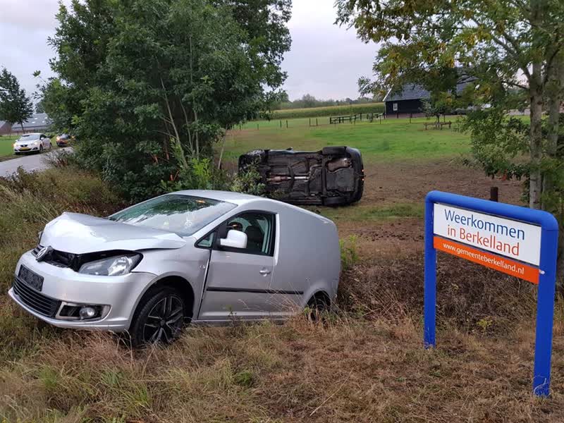 Een auto is woensdagavond in een weiland beland nadat twee voertuigen met elkaar in botsing kwamen in Beltrum. Geen van de inzittenden raakte gewond.