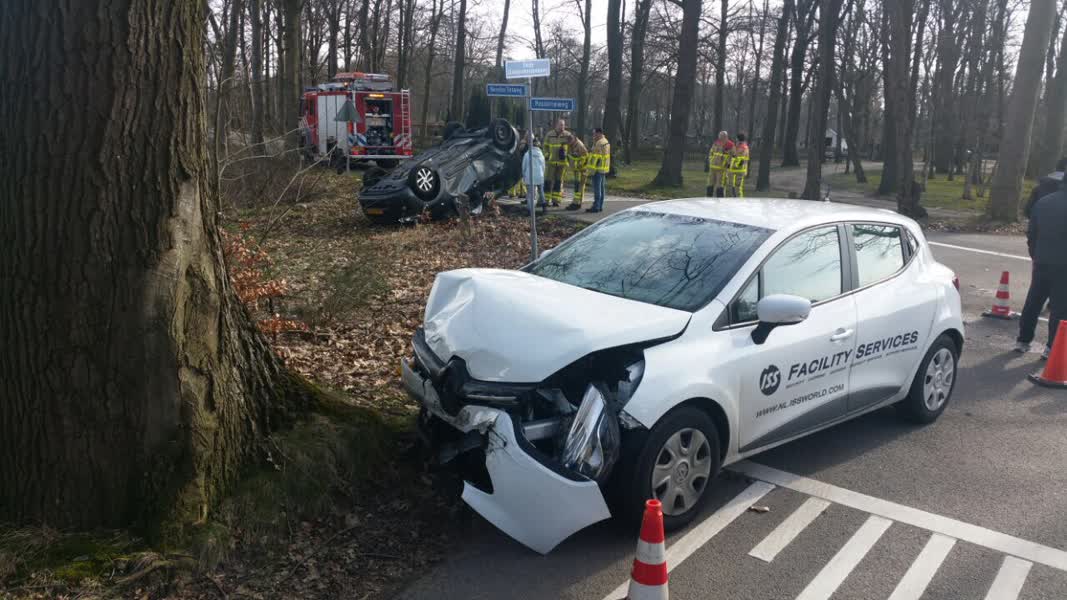 De auto die op de kop lag is door de brandweer weer met de wielen op de grond gezet. Daarna zijn de voertuigen door een berger weggesleept.