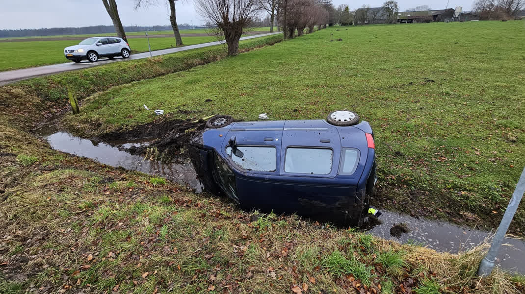 Een automobilist is zondagochtend met zijn voertuig in een sloot terechtgekomen. De bestuurder bleef ongedeerd.