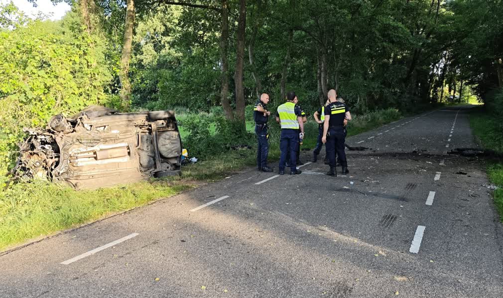 Hoe de auto in de berm is beland is niet bekend. Meerdere hulpdiensten rukten uit naar de locatie van het ongeval, waaronder een traumahelikopter. Beide inzittenen zijn met onbekend letsel per ambulance naar het ziekenhuis gebracht.