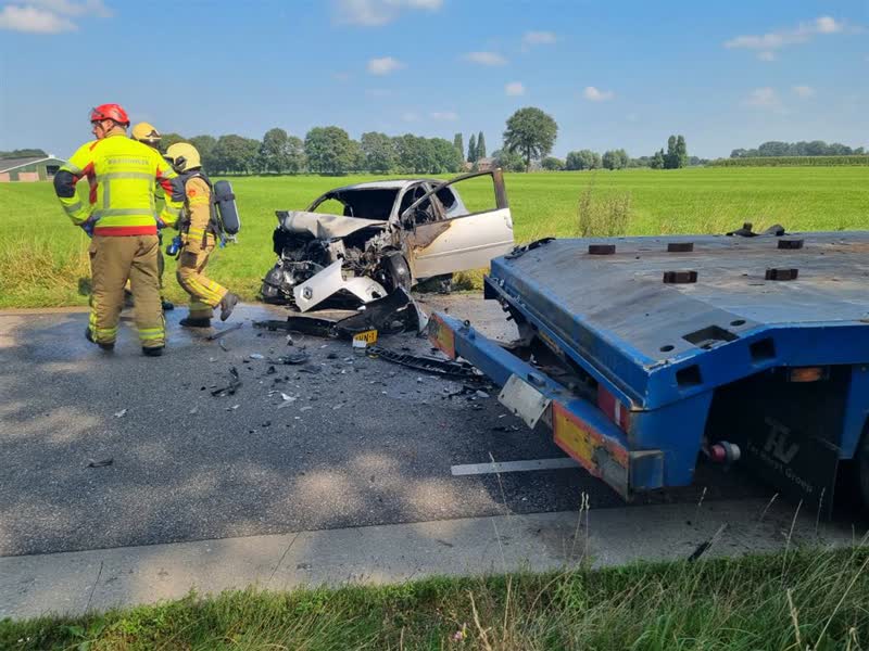 Uiteindelijk moest de brandweer ter plaatse komen om het vuur uit te krijgen. De bestuurder van de auto is met onbekende verwondingen overgebracht naar het ziekenhuis. De auto raakte zwaar beschadigd en moest worden afgesleept.