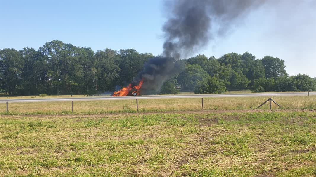 Een auto is dinsdagmiddag volledig uitgebrand op de N18. De bestuurder kon op tijd het voertuig verlaten.