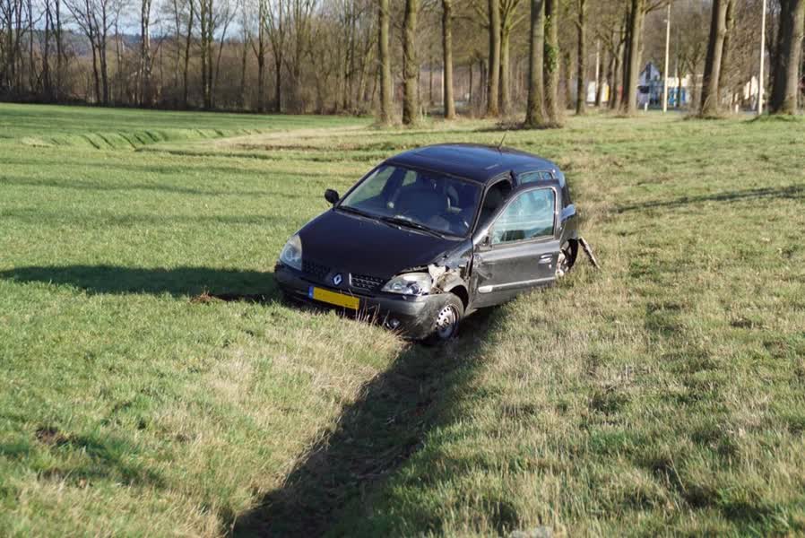 Een automobilist is donderdagmiddag in een droge sloot terecht gekomen na een aanrijding bij Beek. Geen van de betrokkenen raakte daarbij gewond.